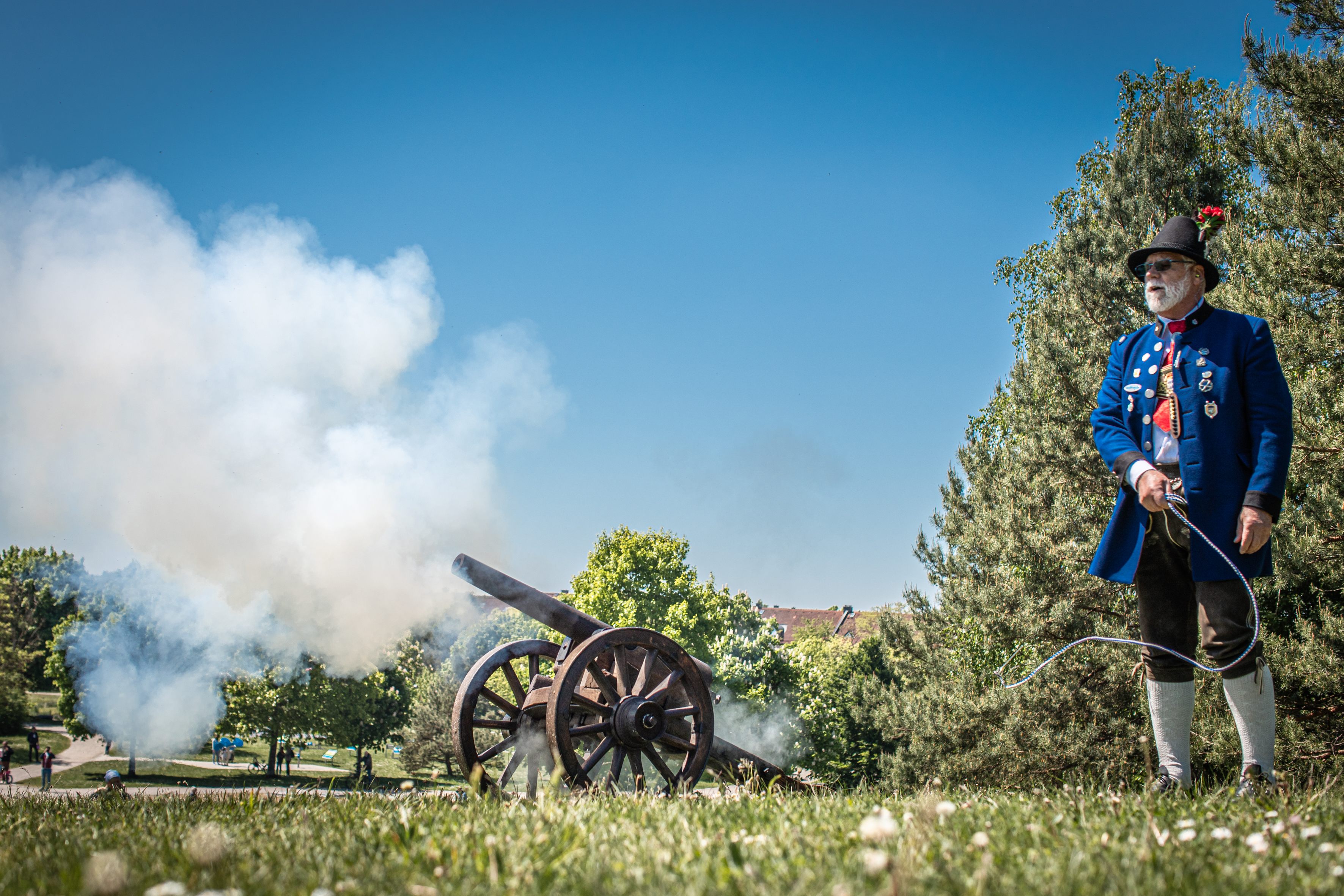 Unsere historische Hinterladerkanone ist ein beeindruckendes Stück Traditions- und Militärgeschichte. Hinterlader bedeutet, dass die Kanone von